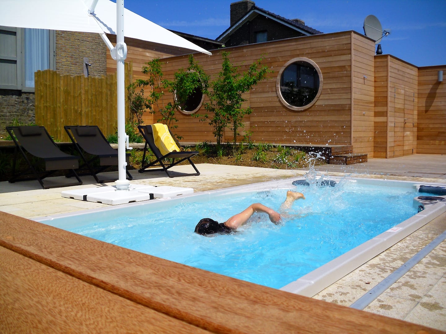 Ontspan en werk tegelijk aan je conditie in de swimspa. Zwem tegen de stroming of relaxeer en maak gebruik van de massagezitplaatsen. Dankzij het ondiepe water (1,20 m) geniet je met het hele gezin.