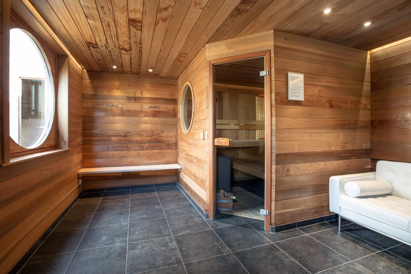 Swimspa: sportzwembad (27.5 graden), in laagseizoen wordt het bad gebruikt als koelzone tijdens de saunasessie (21 graden).